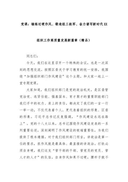 【七哥公文】2025年:党课:锤炼过硬作风、锻造组工铁军、奋力谱写新时代XX组织工作高质量发展新篇章(精品)+更多免费公文+VX:QiGeGongWen2024