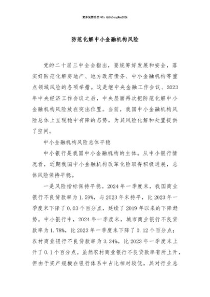 【七哥公文】2025年:【七哥公文】防范化解中小金融机构风险+更多免费公文+VX:QiGeGongWen2024+更多免费公文+VX:QiGeGongWen2024