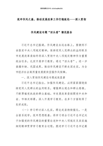 【七哥公文】2025年:【七哥公文】筑牢作风之基,推动发展改革工作行稳致远——深入贯彻作风建设专题“回头看”情况报告+更多免费公文+VX:QiGeGongWen2024+更多免费公文+VX:QiGeGongWen2024