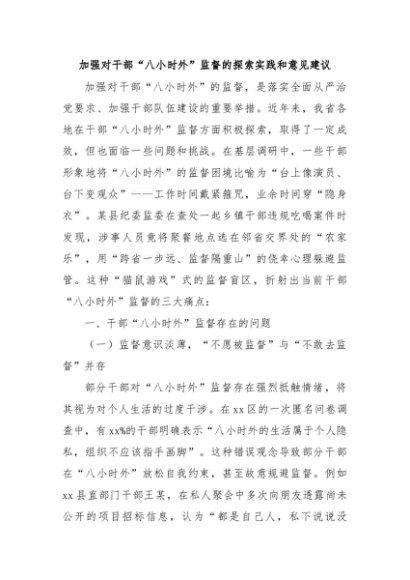 / 【七哥公文】2025年:加强对干部“八小时外”监督的探索实践和意见建议+更多免费公文+VX:QiGeGongWen2024