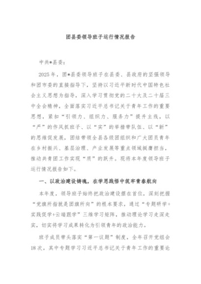 / 【七哥公文】2025年:团县委领导班子运行情况报告+更多免费公文+VX:QiGeGongWen2024