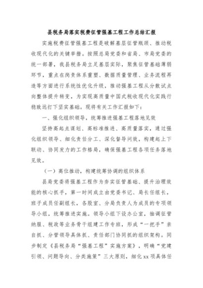/ 【七哥公文】2025年:县税务局落实税费征管强基工程工作总结汇报+更多免费公文+VX:QiGeGongWen2024