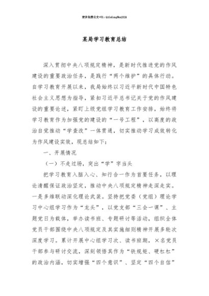 【七哥公文】2025年:【七哥公文】某局学习教育总结+更多免费公文+VX:QiGeGongWen2024+更多免费公文+VX:QiGeGongWen2024
