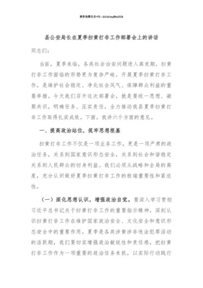【七哥公文】2025年:【七哥公文】县公安局长在夏季扫黄打非工作部署会上的讲话+更多免费公文+VX:QiGeGongWen2024+更多免费公文+VX:QiGeGongWen2024