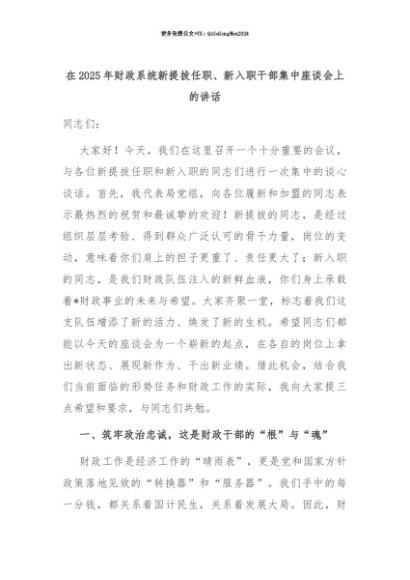 【七哥公文】2025年:【七哥公文】在2025年财政系统新提拔任职、新入职干部集中座谈会上的讲话+更多免费公文+VX:QiGeGongWen2024+更多免费公文+VX:QiGeGongWen2024