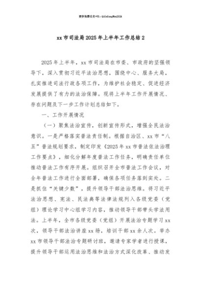 【七哥公文】2025年:【七哥公文】xx市司法局2025年上半年工作总结2+更多免费公文+VX:QiGeGongWen2024+更多免费公文+VX:QiGeGongWen2024