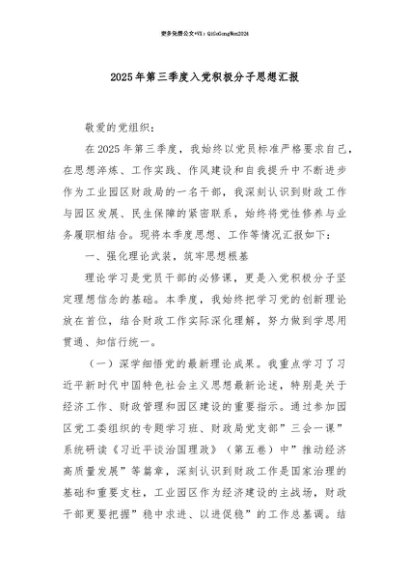 【七哥公文】2025年:【七哥公文】2025年第三季度入党积极分子思想汇报+更多免费公文+VX:QiGeGongWen2024+更多免费公文+VX:QiGeGongWen2024