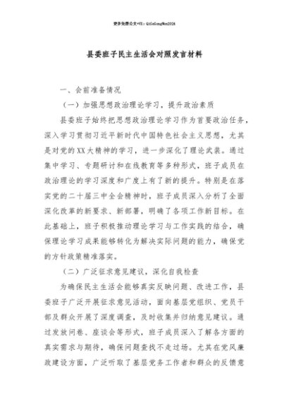 【七哥公文】2025年:【七哥公文】县委班子民主生活会对照发言材料+更多免费公文+VX:QiGeGongWen2024+更多免费公文+VX:QiGeGongWen2024