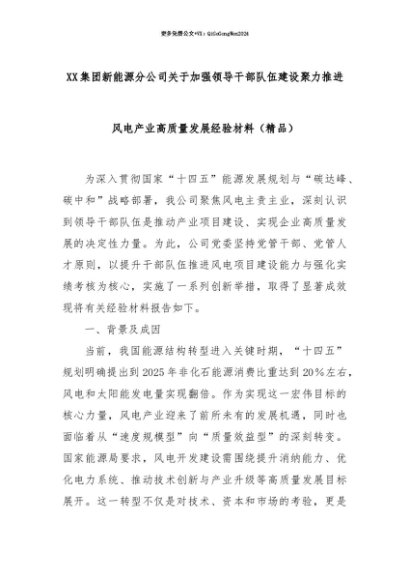 【七哥公文】2025年:【七哥公文】XX集团新能源分公司关于加强领导干部队伍建设聚力推进风电产业高质量发展经验材料(精品)+更多免费公文+VX:QiGeGongWen2024+更多免费公文+VX:QiGeGongWen2024