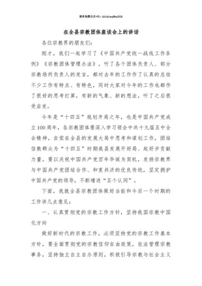 【七哥公文】2025年:【七哥公文】在全县宗教团体座谈会上的讲话+更多免费公文+VX:QiGeGongWen2024+更多免费公文+VX:QiGeGongWen2024