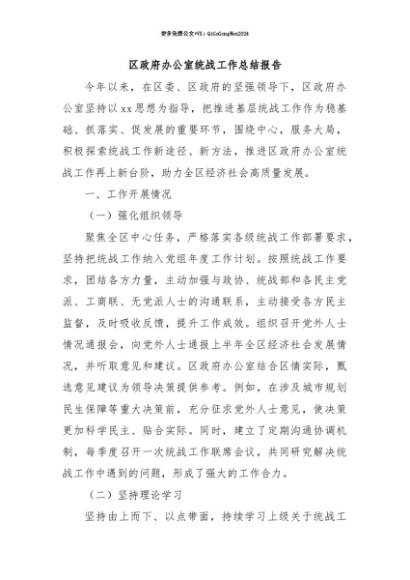 【七哥公文】2025年:【七哥公文】区政府办公室统战工作总结报告+更多免费公文+VX:QiGeGongWen2024+更多免费公文+VX:QiGeGongWen2024