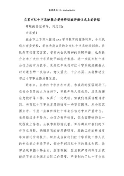 【七哥公文】2025年:【七哥公文】在某市红十字系统能力提升培训班开班仪式上的讲话+更多免费公文+VX:QiGeGongWen2024+更多免费公文+VX:QiGeGongWen2024