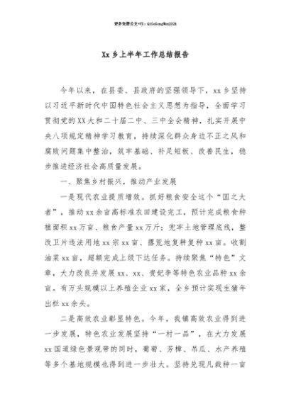 【七哥公文】2025年:【七哥公文】Xx乡上半年工作总结报告+更多免费公文+VX:QiGeGongWen2024+更多免费公文+VX:QiGeGongWen2024