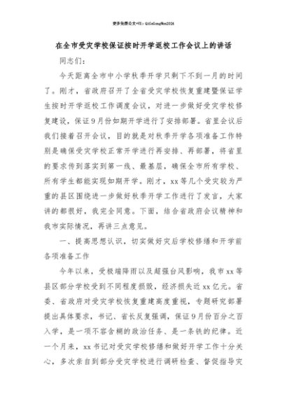 【七哥公文】2025年:【七哥公文】在全市受灾学校保证按时开学返校工作会议上的讲话+更多免费公文+VX:QiGeGongWen2024+更多免费公文+VX:QiGeGongWen2024
