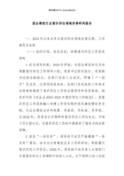 【七哥公文】2025年:【七哥公文】国企建筑行业意识形态领域形势研判报告+更多免费公文+VX:QiGeGongWen2024+更多免费公文+VX:QiGeGongWen2024
