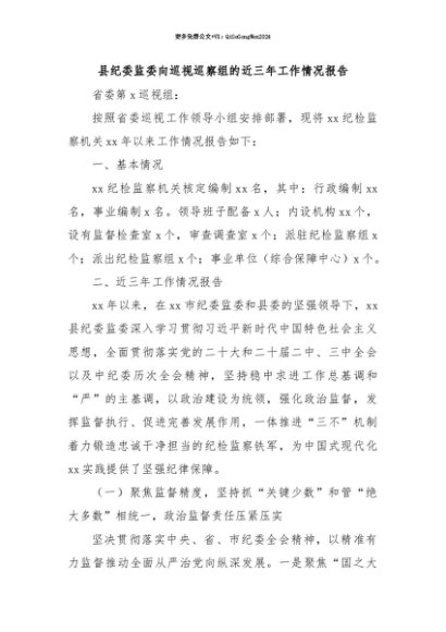 【七哥公文】2025年:【七哥公文】县纪委监委向巡视巡察组的近三年工作情况报告+更多免费公文+VX:QiGeGongWen2024+更多免费公文+VX:QiGeGongWen2024