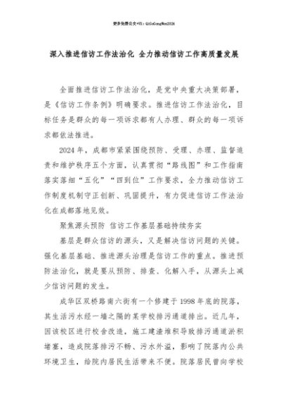 【七哥公文】2025年:【七哥公文】深入推进信访工作法治化 全力推动信访工作高质量发展+更多免费公文+VX:QiGeGongWen2024+更多免费公文+VX:QiGeGongWen2024