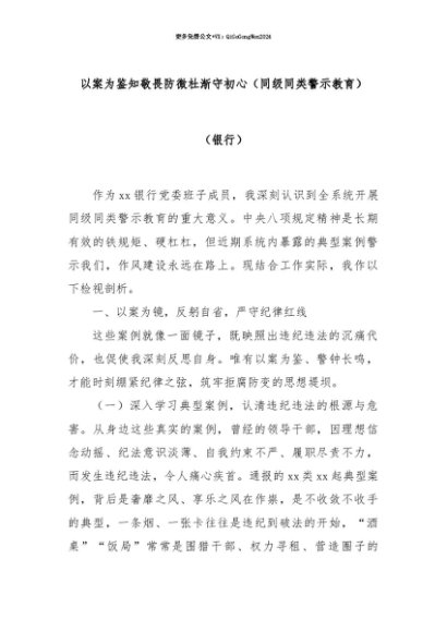 【七哥公文】2025年:【七哥公文】以案为鉴知敬畏防微杜渐守初心(同级同类警示教育)(银行)+更多免费公文+VX:QiGeGongWen2024+更多免费公文+VX:QiGeGongWen2024