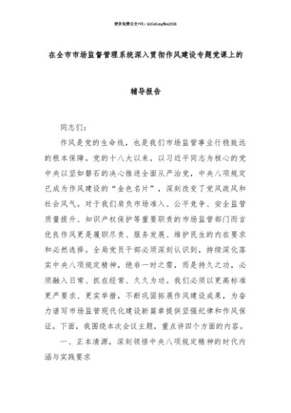 【七哥公文】2025年:【七哥公文】在全市市场监督管理系统深入贯彻作风建设专题党课上的辅导报告+更多免费公文+VX:QiGeGongWen2024+更多免费公文+VX:QiGeGongWen2024