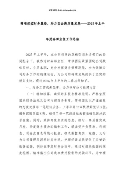 【七哥公文】2025年:【七哥公文】精准把控财务脉络,助力国企高质量发展——2025年上半年财务部主任工作总结+更多免费公文+VX:QiGeGongWen2024+更多免费公文+VX:QiGeGongWen2024