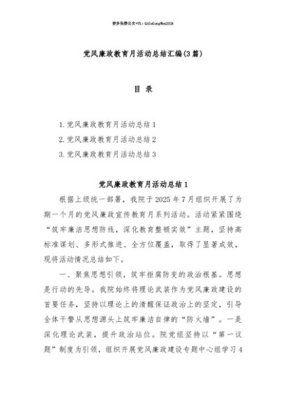 【七哥公文】2025年:【七哥公文】(3篇)党风廉政教育月活动总结汇编+更多免费公文+VX:QiGeGongWen2024+更多免费公文+VX:QiGeGongWen2024