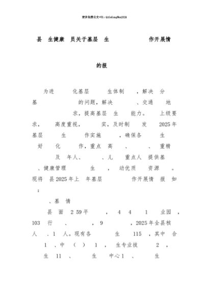 【七哥公文】2025年:【七哥公文】X县卫生健康委员关于基层卫生机构巡诊服务工作开展情况的报告+更多免费公文+VX:QiGeGongWen2024+更多免费公文+VX:QiGeGongWen2024