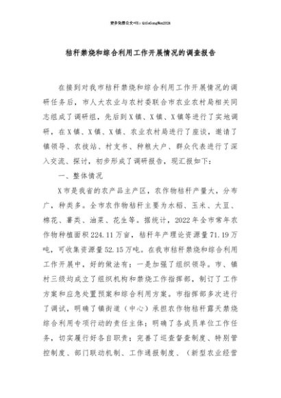 【七哥公文】2025年:【七哥公文】秸秆禁烧和综合利用工作开展情况的调查报告+更多免费公文+VX:QiGeGongWen2024+更多免费公文+VX:QiGeGongWen2024
