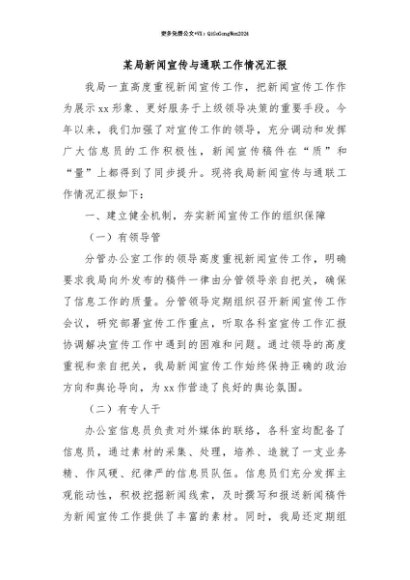 【七哥公文】2025年:【七哥公文】某局新闻宣传与通联工作情况汇报+更多免费公文+VX:QiGeGongWen2024+更多免费公文+VX:QiGeGongWen2024