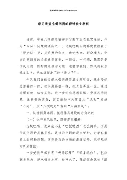 【七哥公文】2025年:【七哥公文】学习违规吃喝问题的研讨发言材料+更多免费公文+VX:QiGeGongWen2024+更多免费公文+VX:QiGeGongWen2024