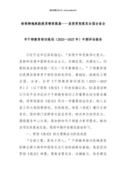 【七哥公文】2025年:【七哥公文】培根铸魂赋能提质增效强基——县委贯彻落实全国全省全市干部教育培训规划(2023-2027年)中期评估报告+更多免费公文+VX:QiGeGongWen2024+更多免费公文+VX:QiGeGongWen2024