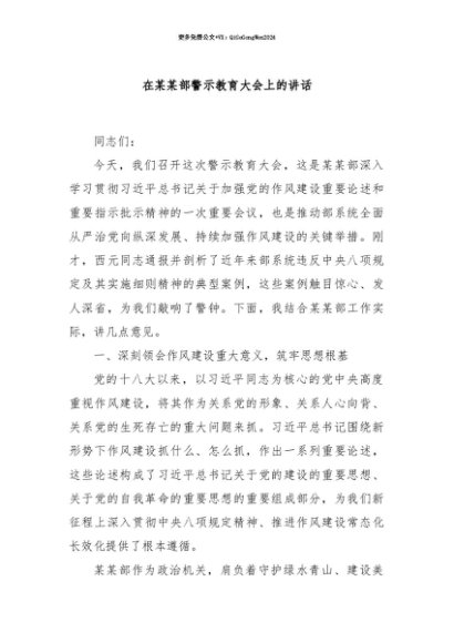 【七哥公文】2025年:【七哥公文】在某某部警示教育大会上的讲话+更多免费公文+VX:QiGeGongWen2024+更多免费公文+VX:QiGeGongWen2024
