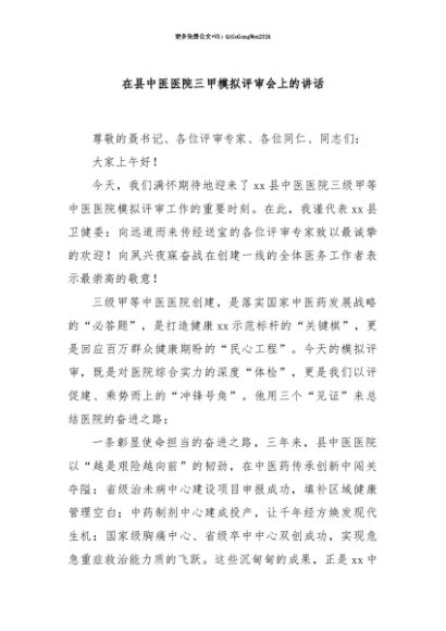 【七哥公文】2025年:【七哥公文】在县中医医院三甲模拟评审会上的讲话+更多免费公文+VX:QiGeGongWen2024+更多免费公文+VX:QiGeGongWen2024