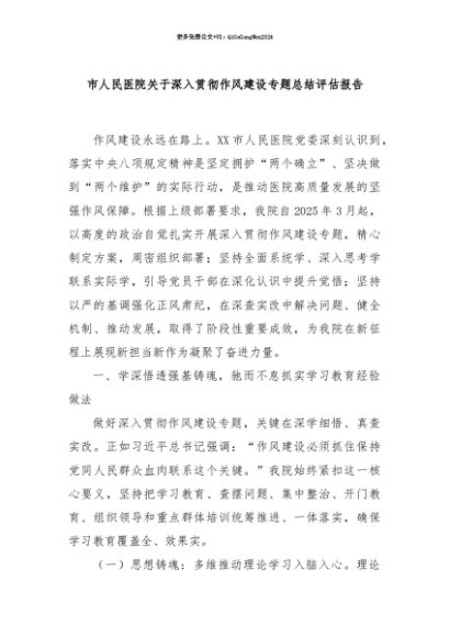 【七哥公文】2025年:【七哥公文】市人民医院关于深入贯彻作风建设专题总结评估报告+更多免费公文+VX:QiGeGongWen2024+更多免费公文+VX:QiGeGongWen2024