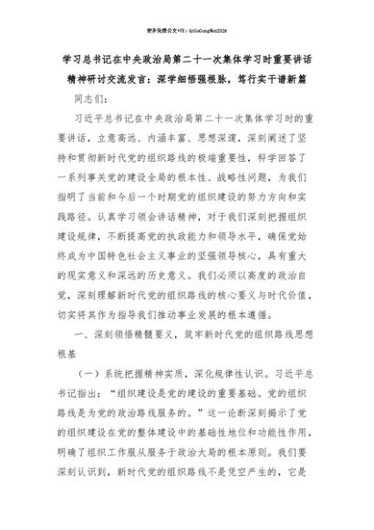 【七哥公文】2025年:【七哥公文】学习总书记在中央政治局第二十一次集体学习时重要讲话精神研讨交流发言:深学细悟强根脉,笃行实干谱新篇+更多免费公文+VX:QiGeGongWen2024+更多免费公文+VX:QiGeGongWen2024