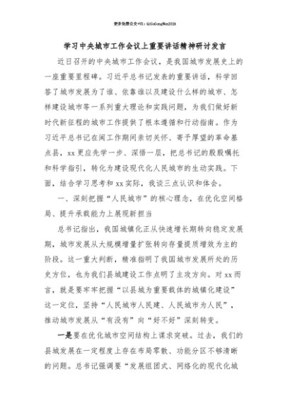 【七哥公文】2025年:【七哥公文】学习中央城市工作会议上重要讲话精神研讨发言+更多免费公文+VX:QiGeGongWen2024+更多免费公文+VX:QiGeGongWen2024