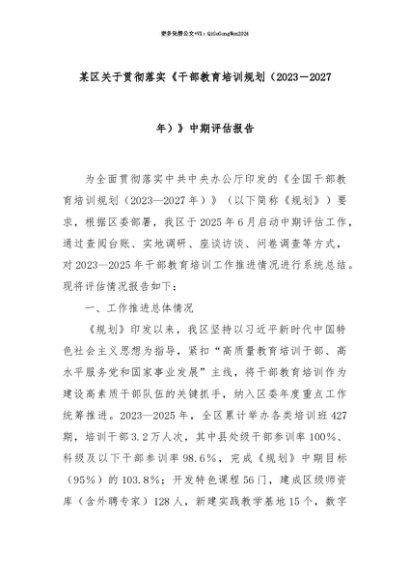 【七哥公文】2025年:【七哥公文】某区关于贯彻落实《干部教育培训规划(2023-2027年)》中期评估报告+更多免费公文+VX:QiGeGongWen2024+更多免费公文+VX:QiGeGongWen2024