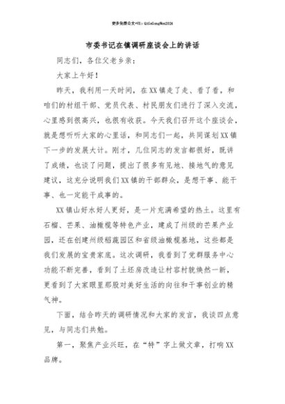 【七哥公文】2025年:【七哥公文】市委书记在镇调研座谈会上的讲话+更多免费公文+VX:QiGeGongWen2024+更多免费公文+VX:QiGeGongWen2024