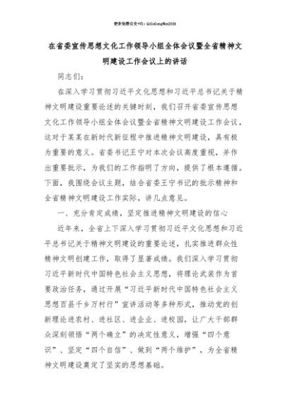 【七哥公文】2025年:【七哥公文】在省委宣传思想文化工作领导小组全体会议暨全省精神文明建设工作会议上的讲话+更多免费公文+VX:QiGeGongWen2024+更多免费公文+VX:QiGeGongWen2024