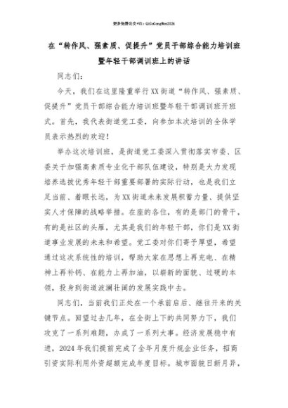 【七哥公文】2025年:【七哥公文】在“转作风、强素质、促提升”党员干部综合能力培训班暨年轻干部调训班上的讲话+更多免费公文+VX:QiGeGongWen2024+更多免费公文+VX:QiGeGongWen2024