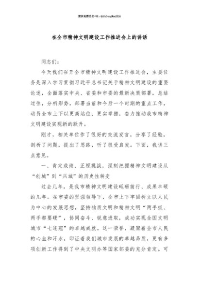 【七哥公文】2025年:【七哥公文】在全市精神文明建设工作推进会上的讲话+更多免费公文+VX:QiGeGongWen2024+更多免费公文+VX:QiGeGongWen2024