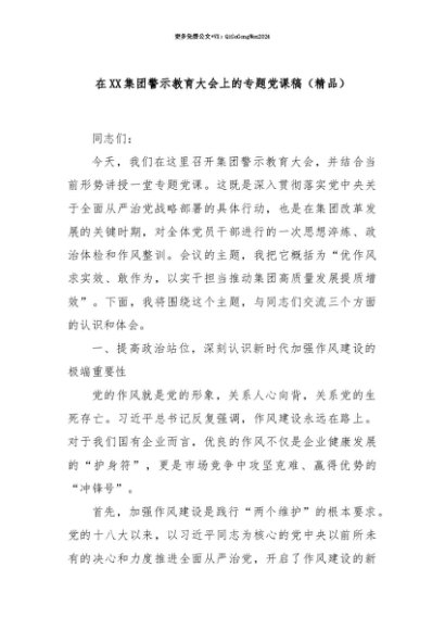 【七哥公文】2025年:【七哥公文】在XX集团警示教育大会上的专题党课稿(精品)+更多免费公文+VX:QiGeGongWen2024+更多免费公文+VX:QiGeGongWen2024