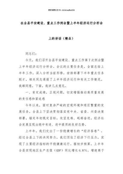 【七哥公文】2025年:【七哥公文】在全县平安建设、重点工作例会暨上半年经济运行分析会上的讲话(精品)+更多免费公文+VX:QiGeGongWen2024+更多免费公文+VX:QiGeGongWen2024