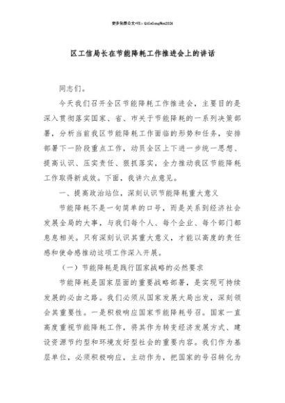 【七哥公文】2025年:【七哥公文】区工信局长在节能降耗工作推进会上的讲话+更多免费公文+VX:QiGeGongWen2024+更多免费公文+VX:QiGeGongWen2024