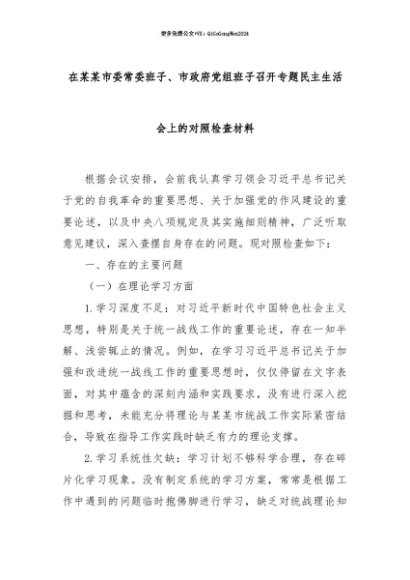 【七哥公文】2025年:【七哥公文】在某某市委常委班子、市政府党组班子召开专题民主生活会上的对照检查材料+更多免费公文+VX:QiGeGongWen2024+更多免费公文+VX:QiGeGongWen2024
