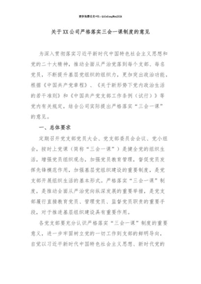 【七哥公文】2025年:【七哥公文】关于严格落实三会一课制度的实施办法+更多免费公文+VX:QiGeGongWen2024+更多免费公文+VX:QiGeGongWen2024