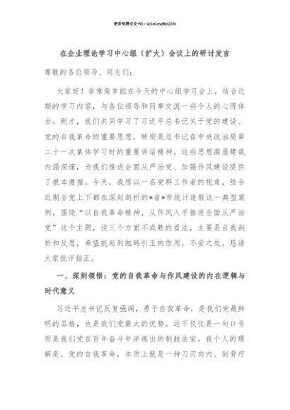 【七哥公文】2025年:【七哥公文】在企业理论学习中心组(扩大)会议上的研讨发言+更多免费公文+VX:QiGeGongWen2024+更多免费公文+VX:QiGeGongWen2024
