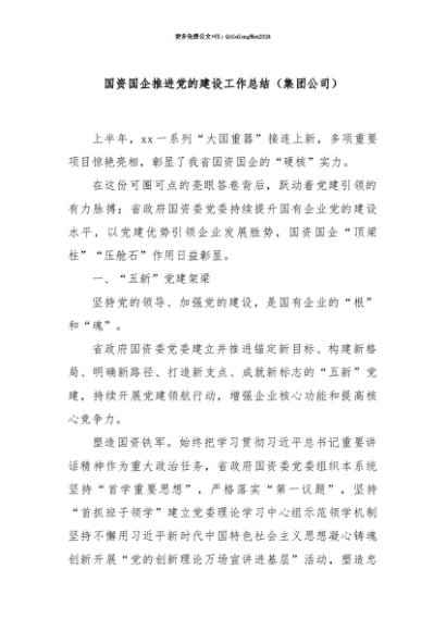 【七哥公文】2025年:【七哥公文】国资国企推进党的建设工作总结(集团公司)+更多免费公文+VX:QiGeGongWen2024+更多免费公文+VX:QiGeGongWen2024
