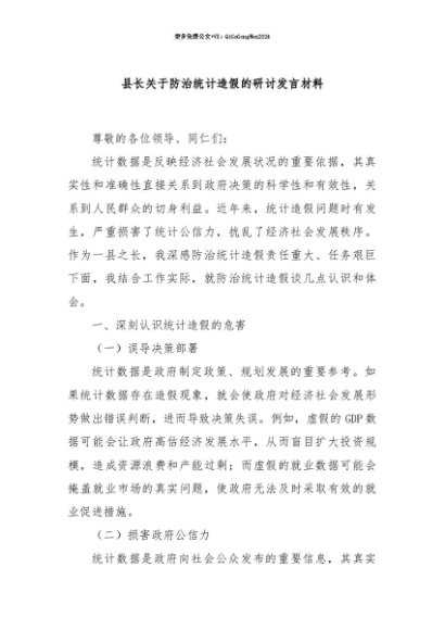 【七哥公文】2025年:【七哥公文】县长关于防治统计造假的研讨发言材料+更多免费公文+VX:QiGeGongWen2024+更多免费公文+VX:QiGeGongWen2024