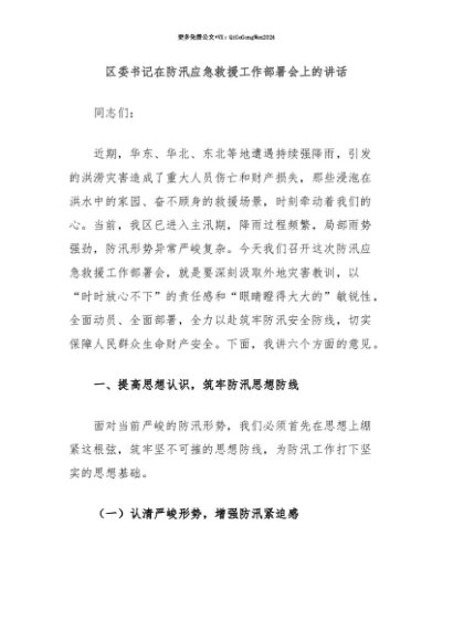 【七哥公文】2025年:【七哥公文】区委书记在防汛应急救援工作部署会上的讲话+更多免费公文+VX:QiGeGongWen2024+更多免费公文+VX:QiGeGongWen2024