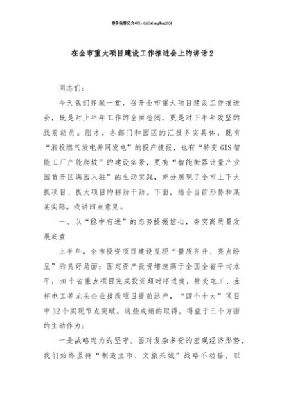 【七哥公文】2025年:【七哥公文】在全市重大项目建设工作推进会上的讲话2+更多免费公文+VX:QiGeGongWen2024+更多免费公文+VX:QiGeGongWen2024